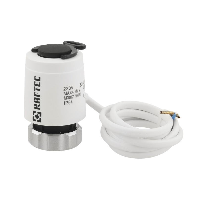 Elektrotermické normálně uzavřené servopohony Raftec - jsou určeny k ovládání termostatických ventilů klimatizačních systémů povelem z pokojového termostatu, regulátoru nebo ručního spínače. Pohony lze použít společně s radiátorovými termostatickými ventily, rozdělovacími skupinami i s jinými termostatickými ventily s připojovací velikostí M30x1,5.