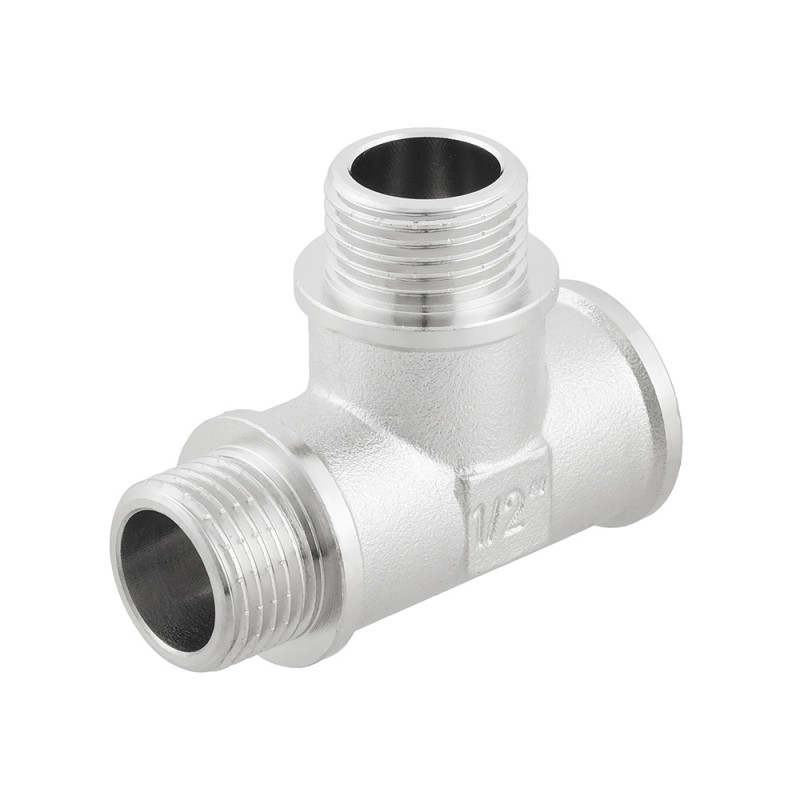 Raftec threaded fitting - nickel-plated brass three-way fitting, straight. Internal-external-external cylindrical pipe thread ISO 228, EN 10226.