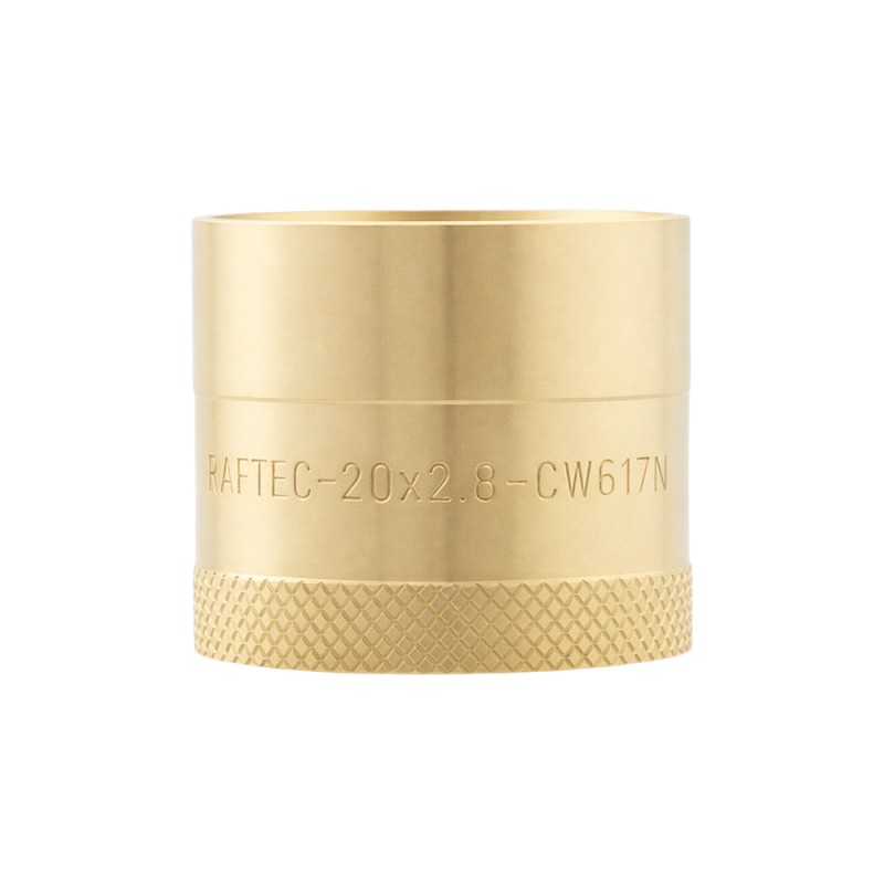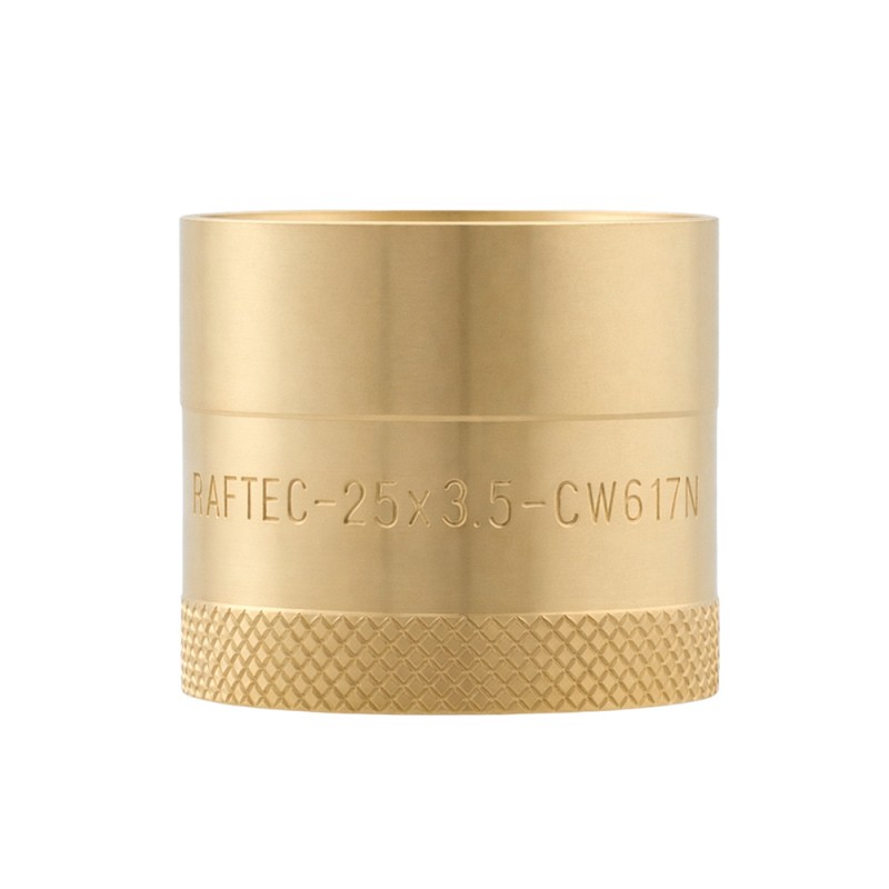 The fitting is made of brass by the method of hot forming. Connectors have specially profiled fittings that are inserted into the extended end of the pipe. And then a brass ring is pulled onto the connection using a manual or hydraulic press. The pipe is hermetically fixed with a ring on the fitting of the connector. In the Raftec system, connectors are universal for all types of pipes with a wall thickness of 16х2.2 / 20х2.8 / 25х3.5 / 32х4.4.