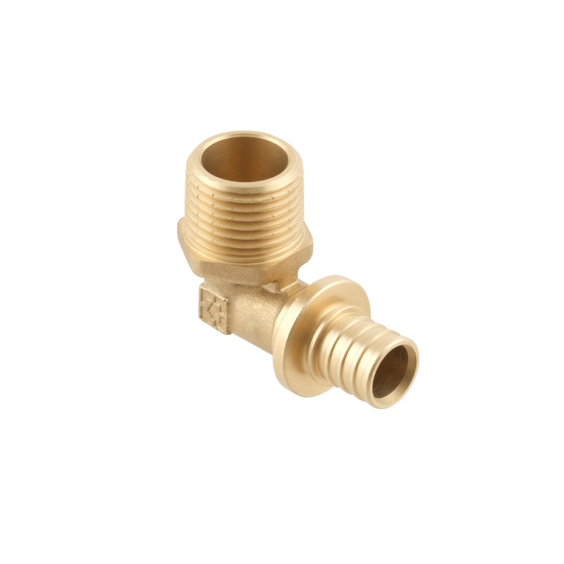 Tension corner with external thread - a brass corner is designed for creating connections in PEX-A, PEX-B, PEX-C, PERT cross-linked polyethylene pipe systems. It is used in drinking, household, process, cold and hot water supply, heating, and compressed air systems.