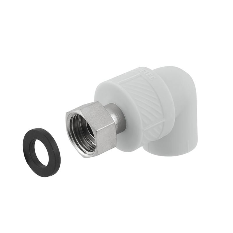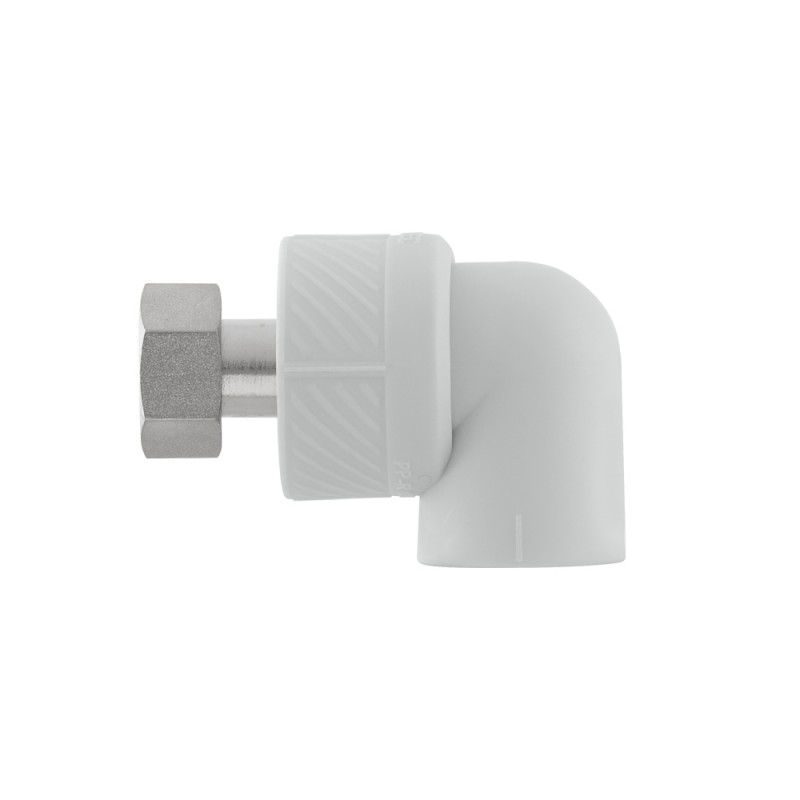 An angular polypropylene coupling with a union nut for connecting a polypropylene pipe to a threaded utility system fitting. The fitting has an internal pipe thread.