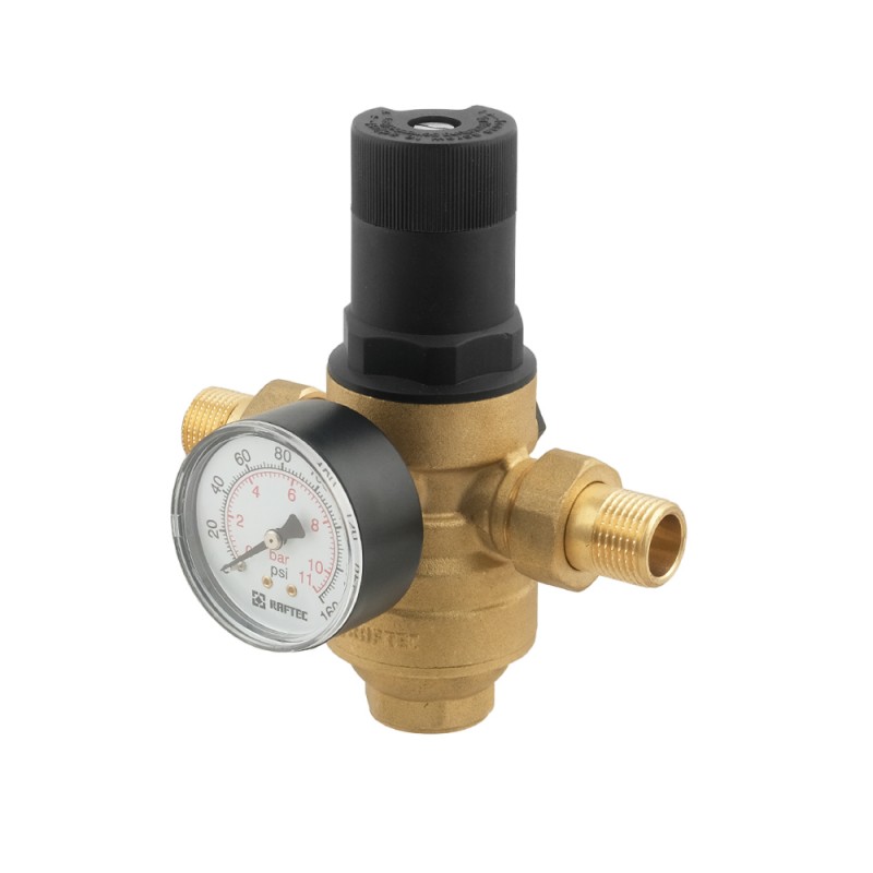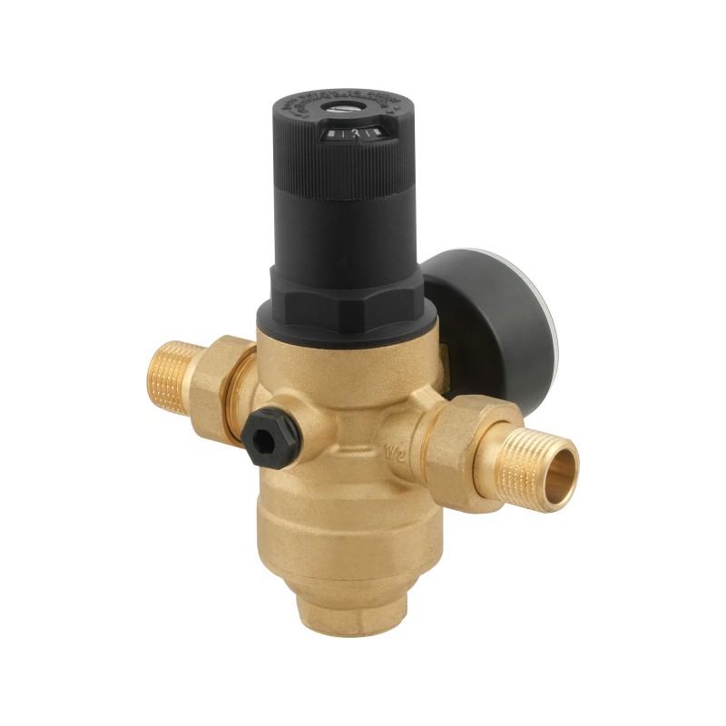 The pressure reducer with a filter is designed to maintain a constant set pressure in dynamic and static mode regardless of pressure surges at the inlet to the reducer. The reducer is used in cold, hot, domestic and industrial water supply networks, as well as other liquids and gases that are not aggressive to the reducer material. The variable version of the reducer with a pressure gauge allows you to visually read the pressure readings of the medium transported after the device. The built-in filter is used to clean the water flow from insoluble mechanical impurities at a temperature of the transported medium up to 70°C and a pressure of up to 10 bar.