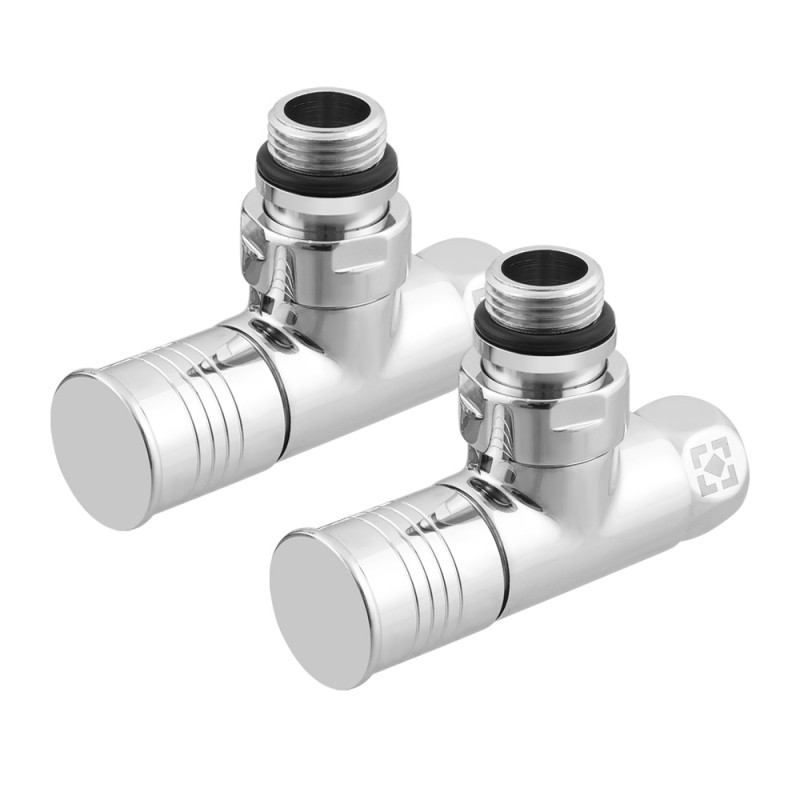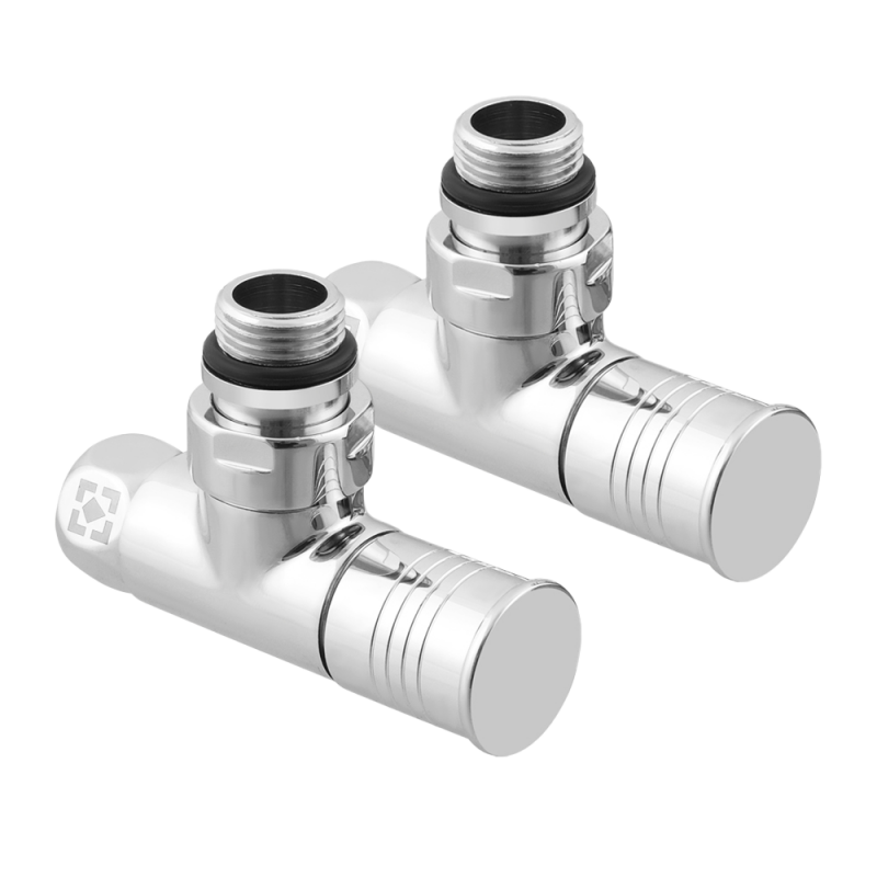 Leņķisko radiatora vārstu komplekts ar uzgriežņuzmavu un apaļu rokturi RV2012-2034
