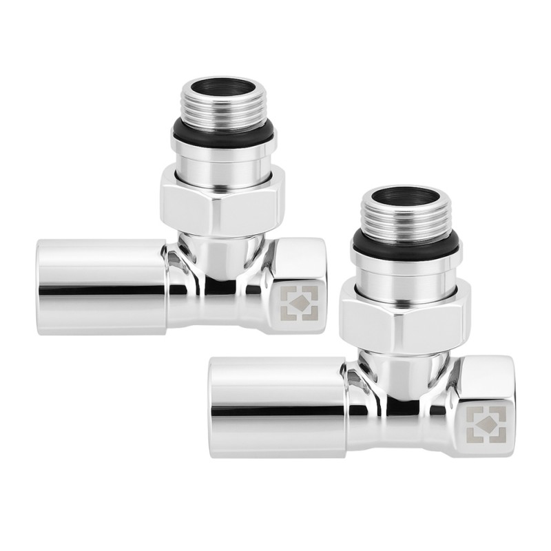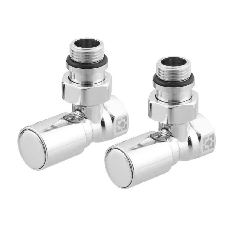 Leņķisku radiatoru krānu komplekts ar savienojuma uzgriezni un apaļu rokturi RV-6012