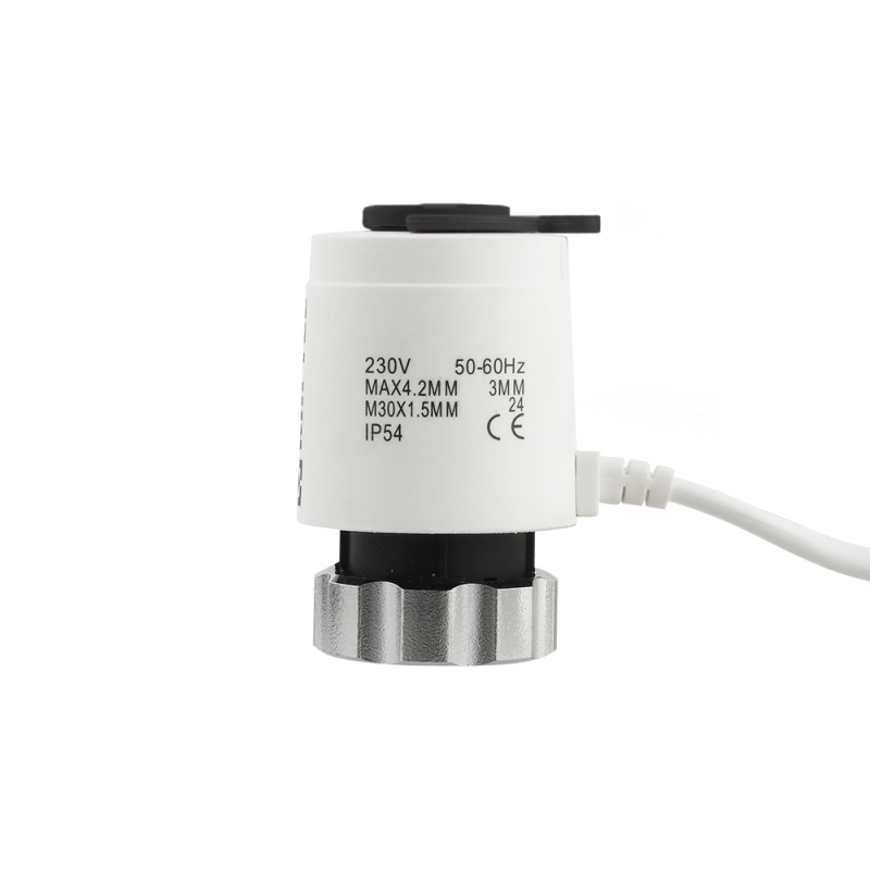 Электротермический сервопривод нормально закрытий Raftec - предназначен для управления термостатическими клапанами климатических систем по команде комнатного термостата, контроллера или ручного переключателя. Сервоприводы могут использоваться совместно с радиаторными термостатическими клапанами, коллекторными группами, а также с прочими термостатическими клапанами, имеющими присоединительный размер М30х1,5.